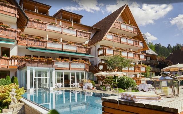 Das Hotel Thomahof liegt zentral in Hinterzarten. Die 48 Zimmer im exklusiven und modernen Landhausstil verzaubern Sie durch warme Farben, hochwertige Materialien und elegante Möbel – einfach zum Wohlfühlen. Tauchen Sie ein in unsere großzügige Wellnesslandschaft mit verschiedenen Pools und Sole-Therme sowie Saunen und Ruhebereich. Bild antippen!