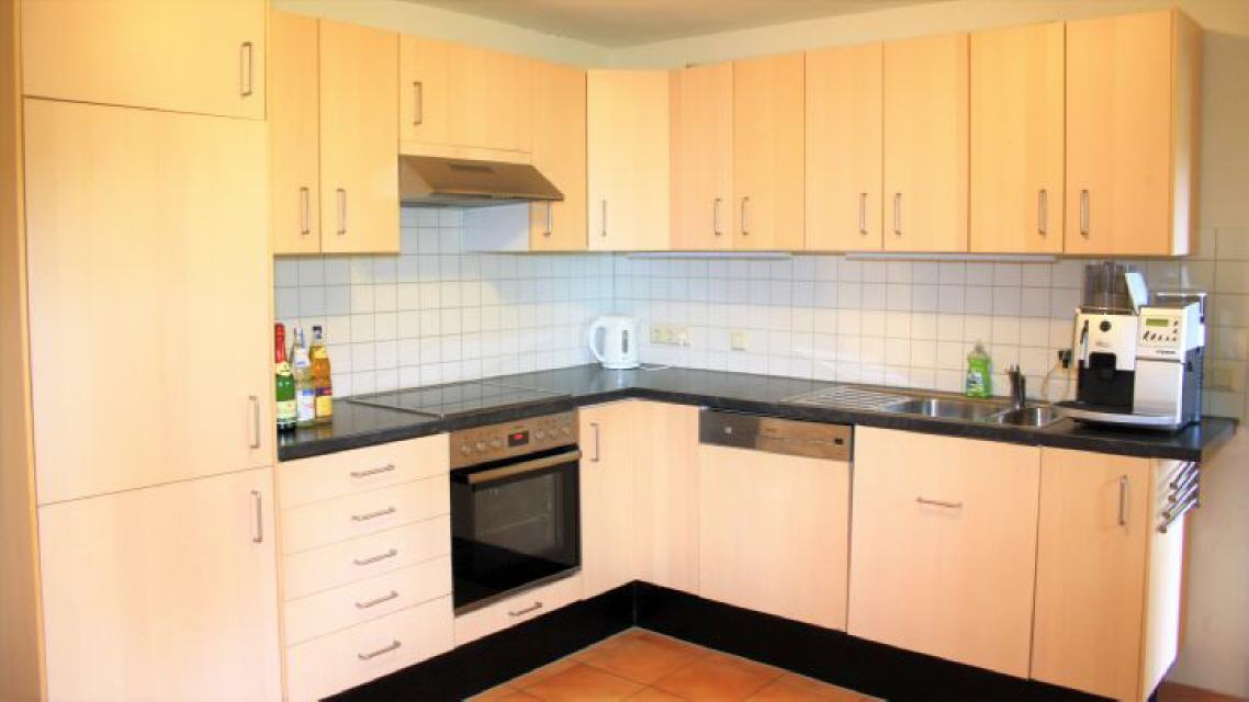 gut ausgestattete Wohnküche mit großem Esstisch