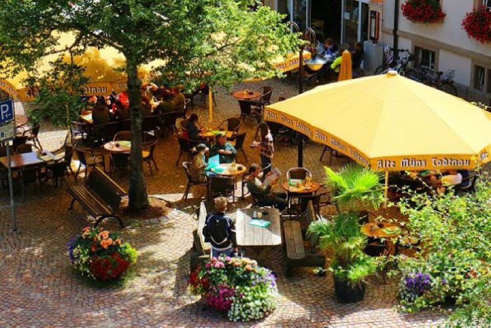 Beim Hohweg dührt ein schmaler Pfad in steilen Serpentinen direkt zum Marktplatz neben der Kirch. Zum Abschluss der Tour können Sie sich in einem der Cafés, Ristorantes oder Gaststätten eine Pause gönnen, ehe Sie entlang der Meinrad-Rhomar-Straße zum Parkplatz, dem Ausgangspunkt, zurückkehren.
